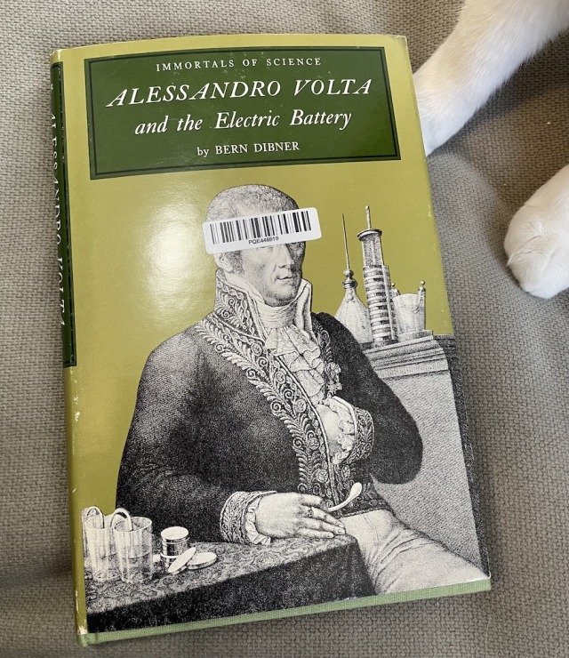 Okay so now I NEEDED to read the letter in English. I found an English-language summary published by the Royal Society, but it looks like the only English translation of the full letter was in the appendix an out-of-print book called “Alessandro Volta and the Electric Battery.”