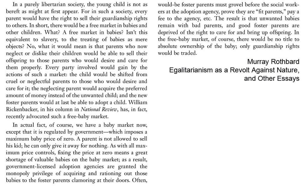 Eh, on the grey market (through private adoptions coordinated by fixer-lawyers, laundered as legal fees, adoption fees, support for the biological mother, birthing and medical expenses) a healthy white baby can fetch in the mid-six figures and up.