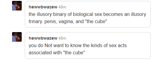 The thing that bothers me about cyberpunk-themed smut is that it’s always like “oh no, cyborg genitals”, and every time it’s just a scary-looking penis. If I was going to the trouble and expense of having my junk replaced with heavy machinery, I wouldn’t settle for what God intended, all right? I’m talking about robotic appendages which enable modalities of intercourse heretofore unknown to science. You know? Members which by their very existence perturb the ontology of fucking.