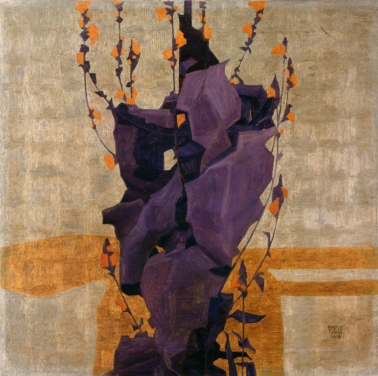 Egon Schiele (Austrian, 1890-1918) Stylized Floral on Decorative Background, 1908