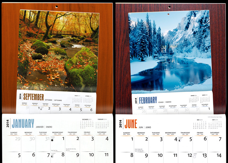 Months of the Year 2014 Calendar featuring January’s Month of the Month, September, and June’s Month of the Month, February.