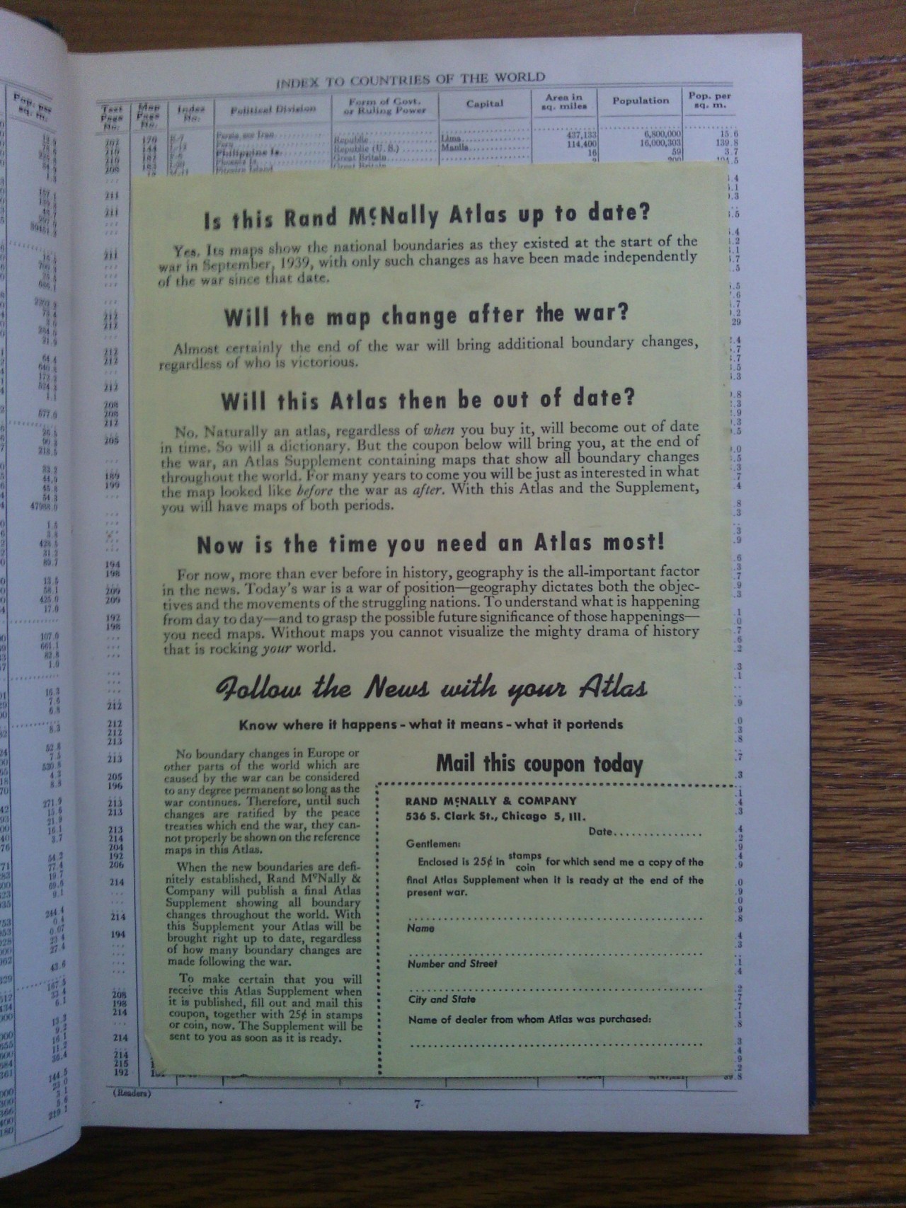To make certain that you will receive this Atlas Supplement when it is published, fill out and mail this coupon, together with 25¢ in stamps or coin, now. The Supplement will be sent to you as soon as it is ready.