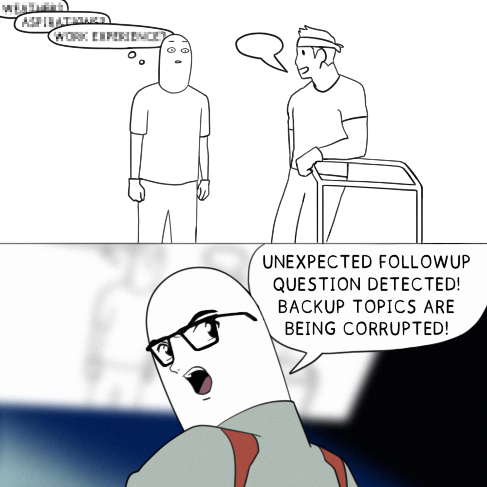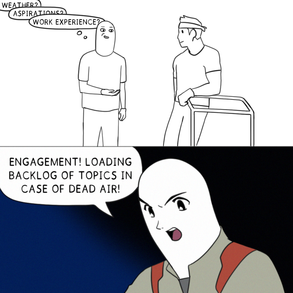 Well maybe even better cause the classic trope is undercutting a smooth talker by drawing attention to the way the things they say do not cohere in a logical view but I have decades of experience of approaching conversation from an exclusively “what actually makes sense here?” standpoint and drawing on that experience I can make sure my patter holds together even if I don’t entirely know what it’s gonna be until it comes out of my mouth.