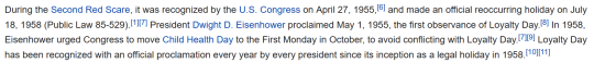 Note also that we celebrate May 1 as Loyalty Day for the same reason we have Labor Day in September and played up the volksy “dancing around the Maypole” angle in the 20th century, to distance from May Day as labor-leftist holiday