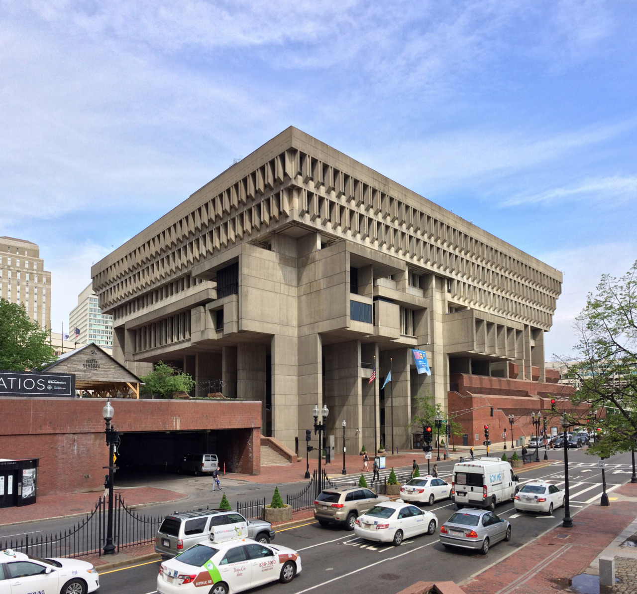 The shape of the Boston City Hall popularized the phenotype based clearly on La Tourette, that was to be encountered in similar shapes the world over (#LaTouretteType): It can be read as a temple missing its gable.