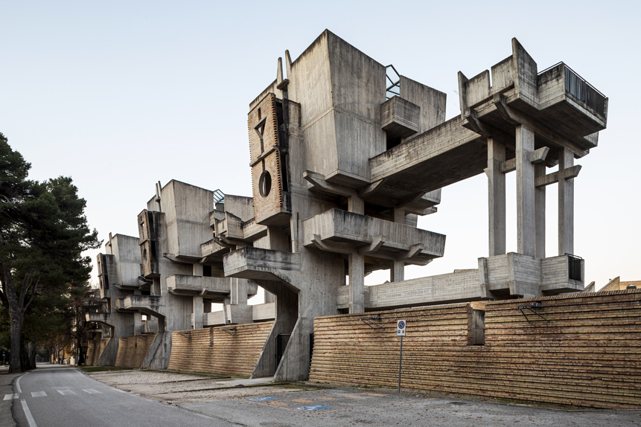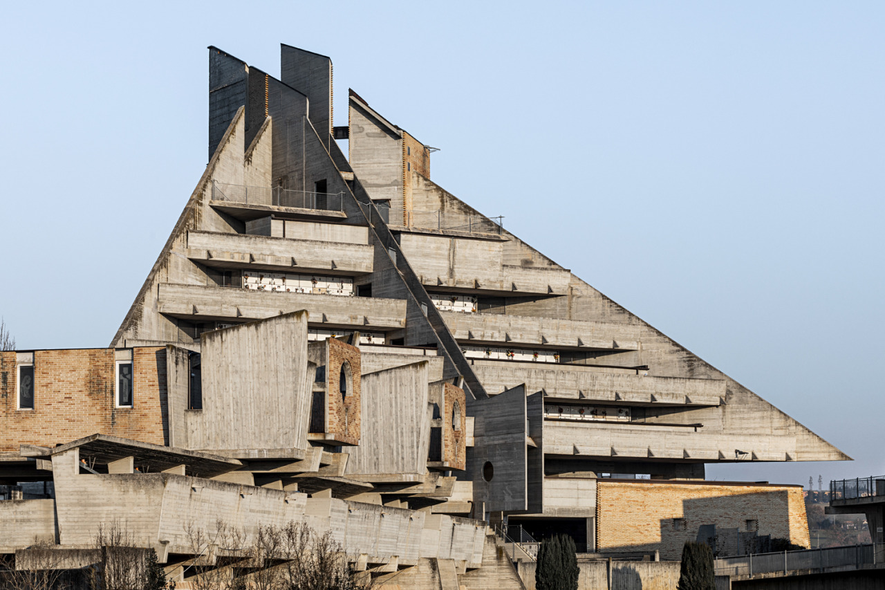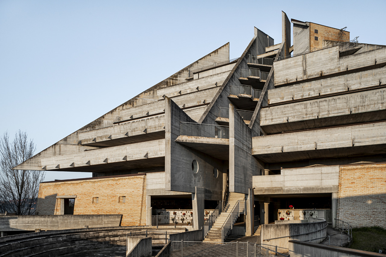 With the start into the new week, we want to share a new project in the database: The cemetery extension in Jesi by Leonardo Ricci. The entire complex is pervaded by phantastical shapes and what appear to be optical curvatures caused by oblique design elements.