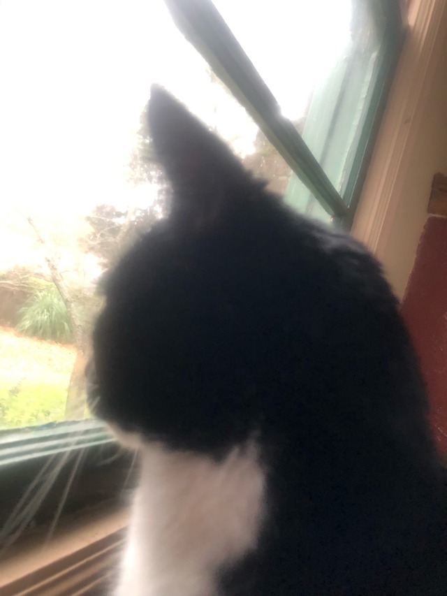 I’m sitting here and he’s trying to get me to open the window for him
