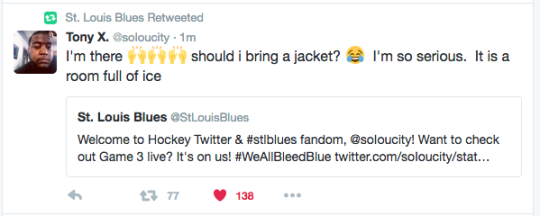 I’m crying. I’m also rooting for the Blues now.