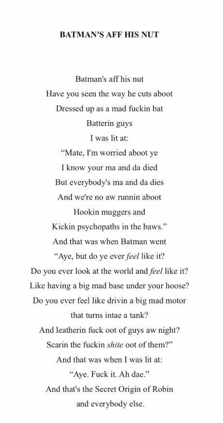 Solution instead it was a (cat) lady grown to her late 30s in escapist obesity never had to live up to her self-conception (that’s why she wrote fanfic) who gets hit on the head, hard, in one of those timeless Gotham muggings.