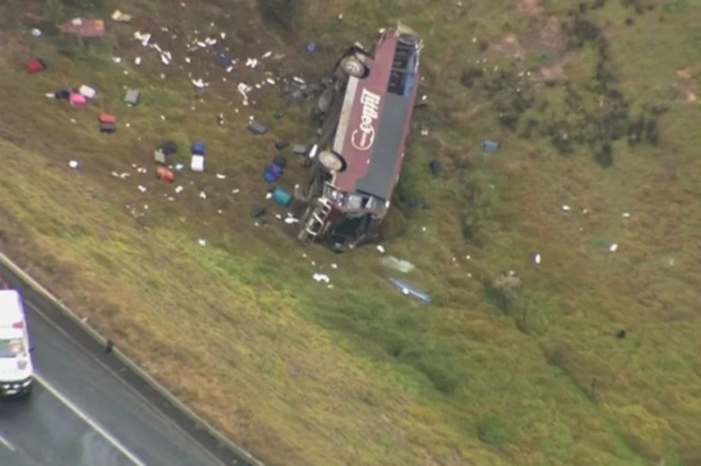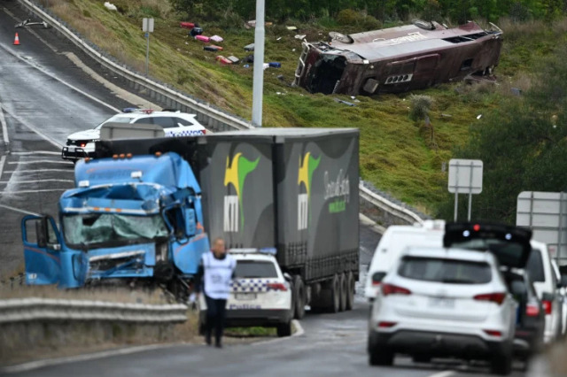 oof, bus was stopped due to an earlier crash when a truck came around the corner and knocked it off the road, incredible that no one was killed, nothing good happens on a bus after midnight