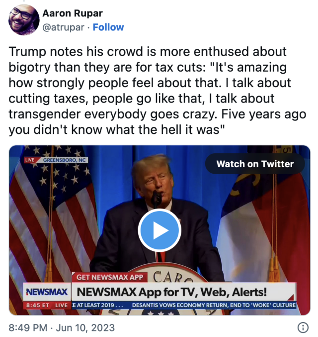 @sivavakkiyar Exactly right. That comment made it really clear that he’s joining the anti-trans brigade in 2024 purely because he knows some of his fans want to hear it
