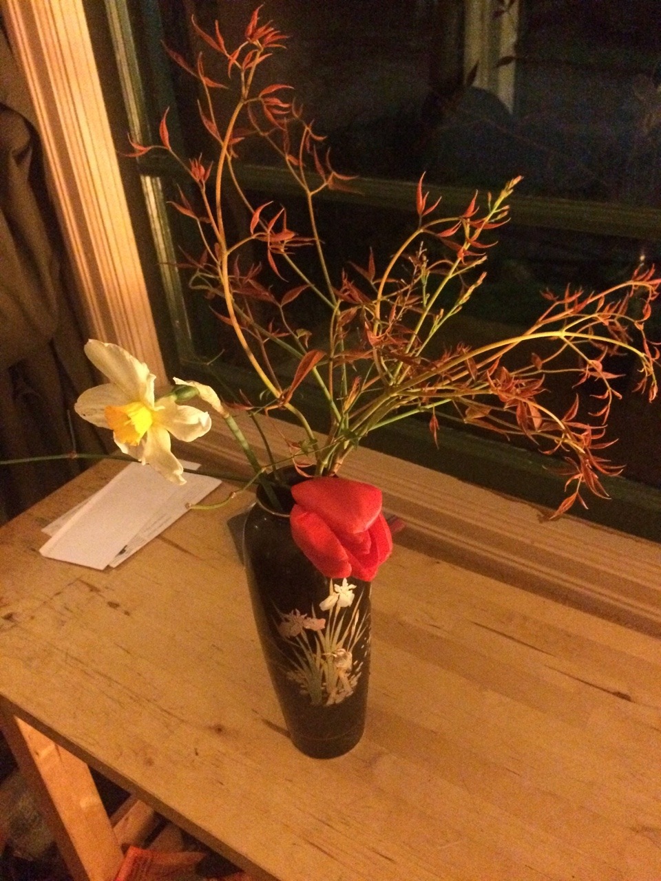 this roughed-up windstorm salvage is the first bouquet of the year