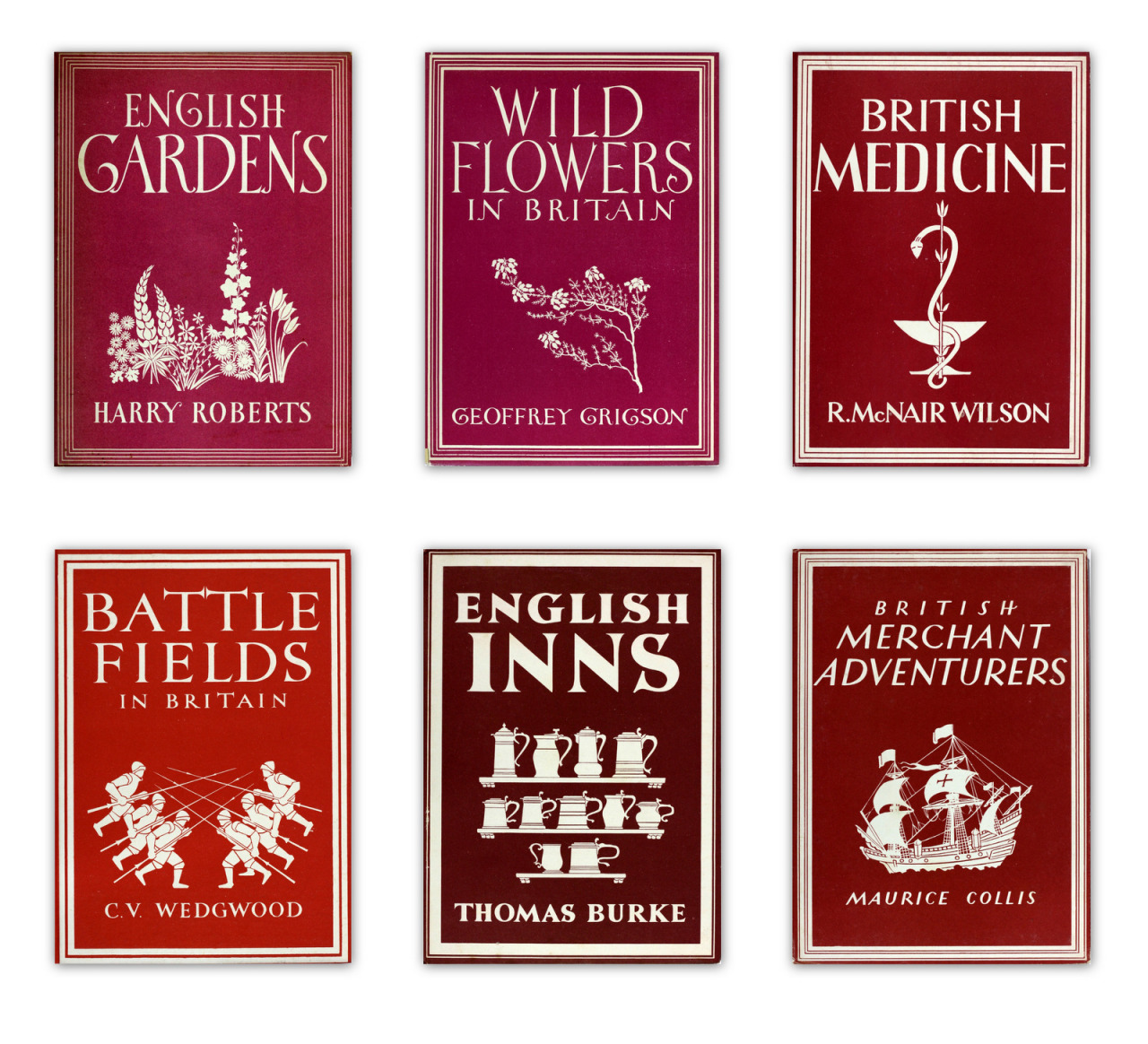 A wide variety of subjects were covered from battlefields to boxing, clocks to mountaineering, butterflies to farm animals, and from waterways and canals to maps and map-makers. In all, there were were 132 titles. The books also covered the Commonwealth – John Buchan’s wife, Lady Tweedsmuir wrote about Canada while Ngaio Marsh and R M Burdon wrote about New Zealand.