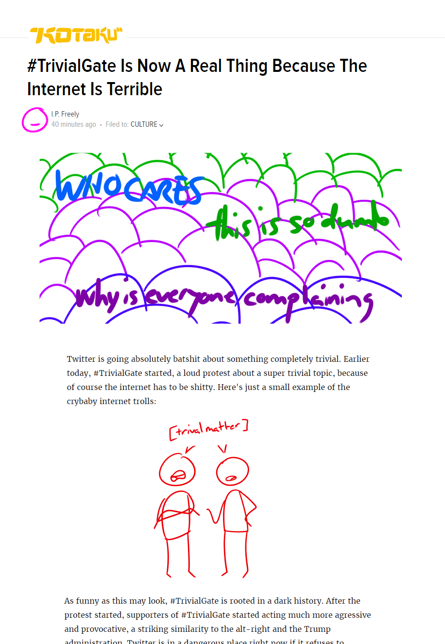 I couldn’t help but recall when Gawker was covering the Hulk Hogan trial that took them down, and he tearfully testified to the pain they’d caused him by mockingly showing the world a private recording of him having sex, they dismissively (, accurately) pointed out he makes a living by pretending to be hurt by things that do not actually hurt