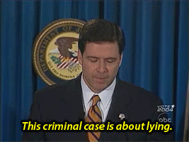 U.S. Attorney James Comey speaks to the press after the indictment of Martha Stewart, June 2003