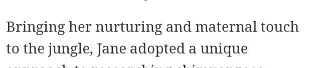 (We now know this to be mistaken! A lot of what the public knows about gorillas comes through Jane Goodall.)