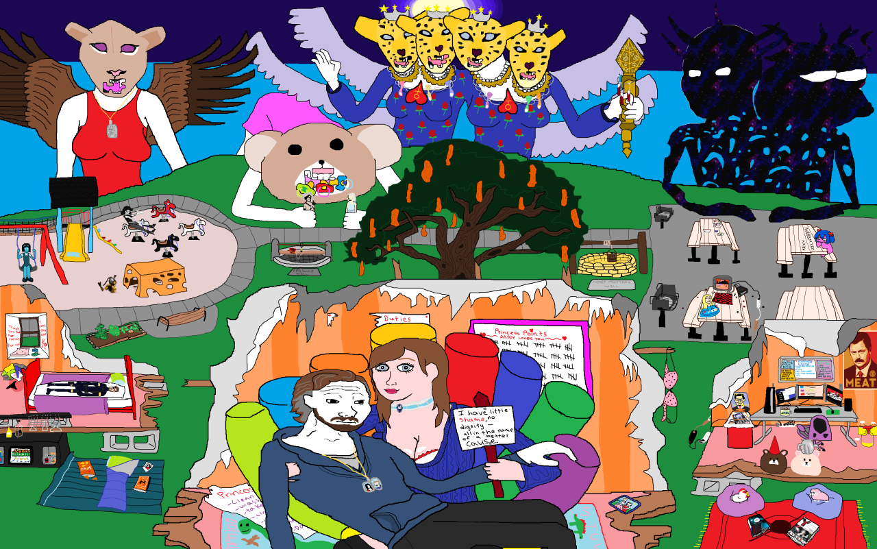 Please hit me up if you know where I can find more of these surreal ~2014 (?) 4chan memes of female NEETs that I find incredibly...