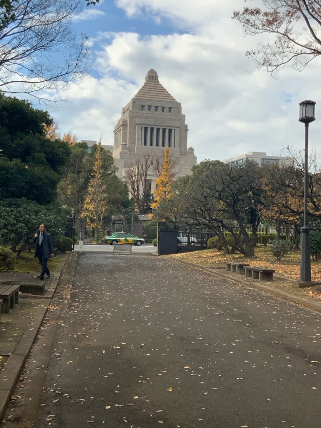 The Diet Building photographed from behind. The Diet is the Japanese legislative body the building has a curious architecture. The lower half to me is very Greco Roman but the top is almost meso-American.