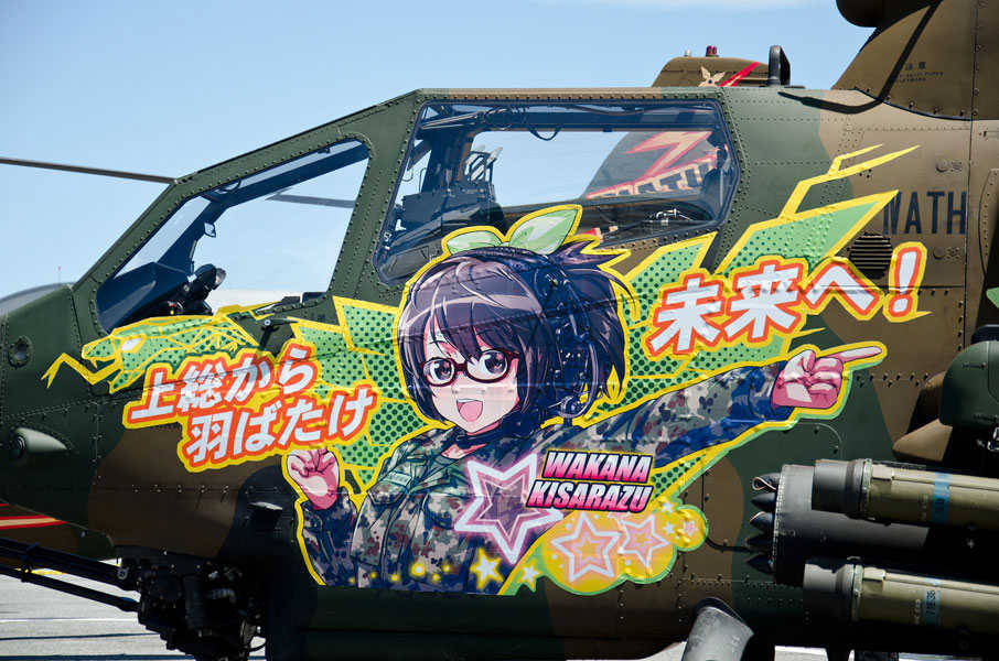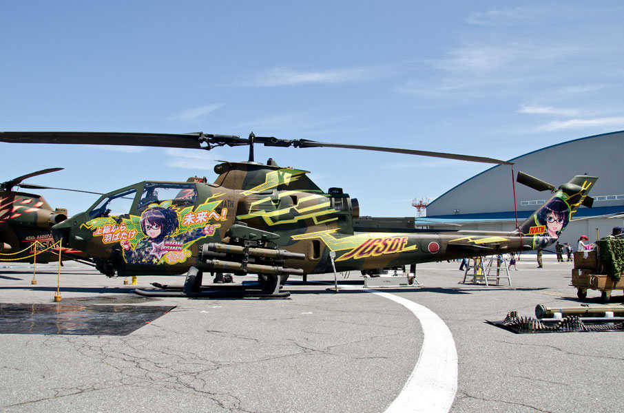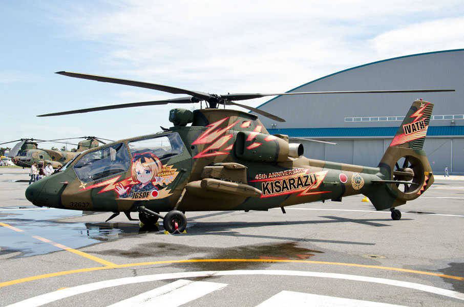 Kisarazu sister of the Japanese Ground Special Defense Force showing off their anti-tank helicopters. Really really cute helicopters. These people are legit members of the JGSDF