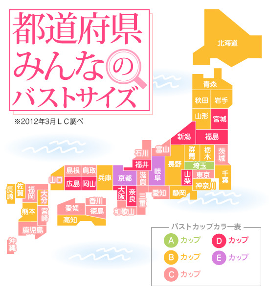 Bra cup size in Japan by prefecture.