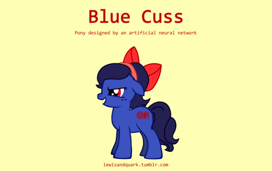 The neural network also generated some ponies that would definitely not appear in a kid’s TV show - I’m not sure where it learned some of those words. If you want the unfit-to-print ponies, fill in your email here and I’ll send them to you.