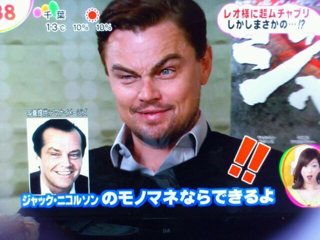 Leonardo DiCaprio’s doing an impression of Jack Nicholson on a Japanese tv program