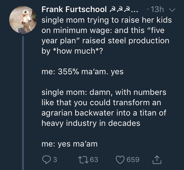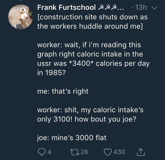 And I mean, this maybe sounds like an argument for socialism. Though not of any actually-existing- variety, as capitalist propaganda will be glad to tell you, Soviet work culture, at least when the morale thrills of the Revolution and Great Patriotic War faded from personal to institutional memory, was all about shirking and vodka.