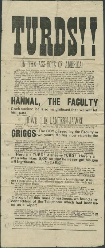 and type TURDS in a bunch of different fonts. And it made Indiana University faculty so mad they literally hired the “Strike Worker Killing, Domestic Mercenary” Pinkerton Detective Agency to find who made it. At some point in 1890, Pinkertons were hunting down someone for typing “Here is a TURD! A sheeny TURD!” And this is a real part of American history.