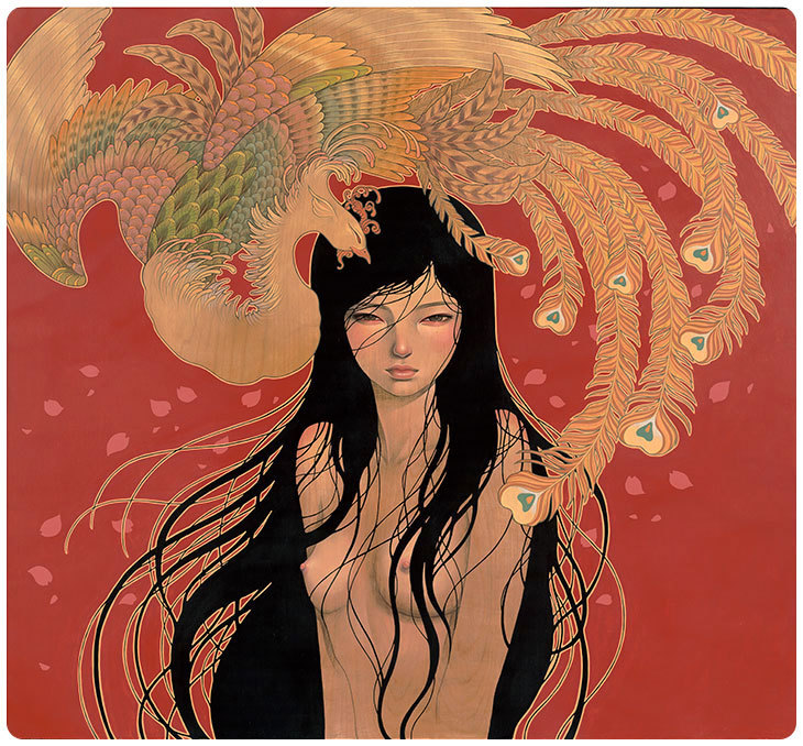 Above are all the gorgeous new paintings by Audrey Kawasaki for her show, “Hirari Hirari“ that is currently on display at Merry Karnowsky Gallery in Los Angeles, California. The show will be on display until August 30th, 2014. Absolutely check it out if you’re in the area.