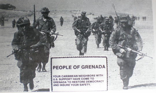An iconic image of US Army Rangers during Operation: Urgent Fury, the invasion of Grenada in 1983. It was used as propaganda in...