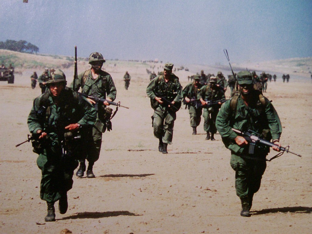 An iconic image of US Army Rangers during Operation: Urgent Fury, the invasion of Grenada in 1983.