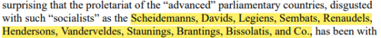one of my favourite things about lenin is how he clearly had like a metnal list of Guys Who Piss Him Off ready to go at all times. he’ll make a point and be like ‘and by the way here’s the names of eight guys who disagree with me and they’re all wrong’