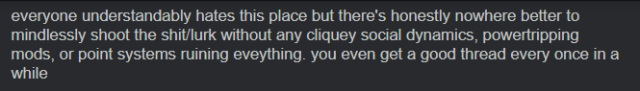 Though I think there is an added factor to this one - in 1998 on the internet you would expect people to care about this more. The reason fan artist #8367 phrases every non-art tweet as a joke or politics rant is because they know you won’t care otherwise, you have ten thousand fan artists to choose from so you gotta make it interesting (note, if you are thinking of counterexamples: are they hot?). You only matter for your content; existing is useless. But on the early internet, running a website? You were important *by default*. You got points just for showing up. Numbers were low, content was sparse, finding peers was take-what-you-can get. As such, you did care about the person, inherently, as they were there, and that makes them worth caring about. Its like default celebrity status. Visiting these websites - personally made by small groups - was like a digital housecall. People very quickly became no-qualifiers-needed-friends in that environment.