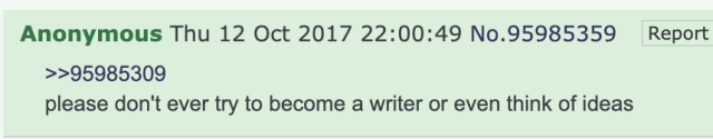 The fundamental [tumblr] vs. Twitter thing is that Twitter treats replies and reblogs as creating a subforum about that particular post, and no bby what is you doing